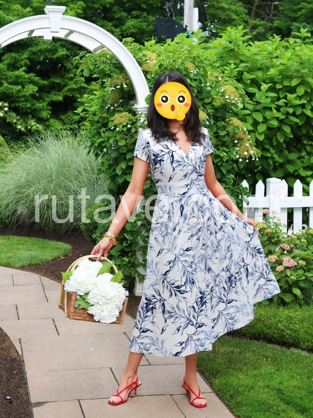 Trendy Plant Print V-Neck Short Sleeve Midi Dress