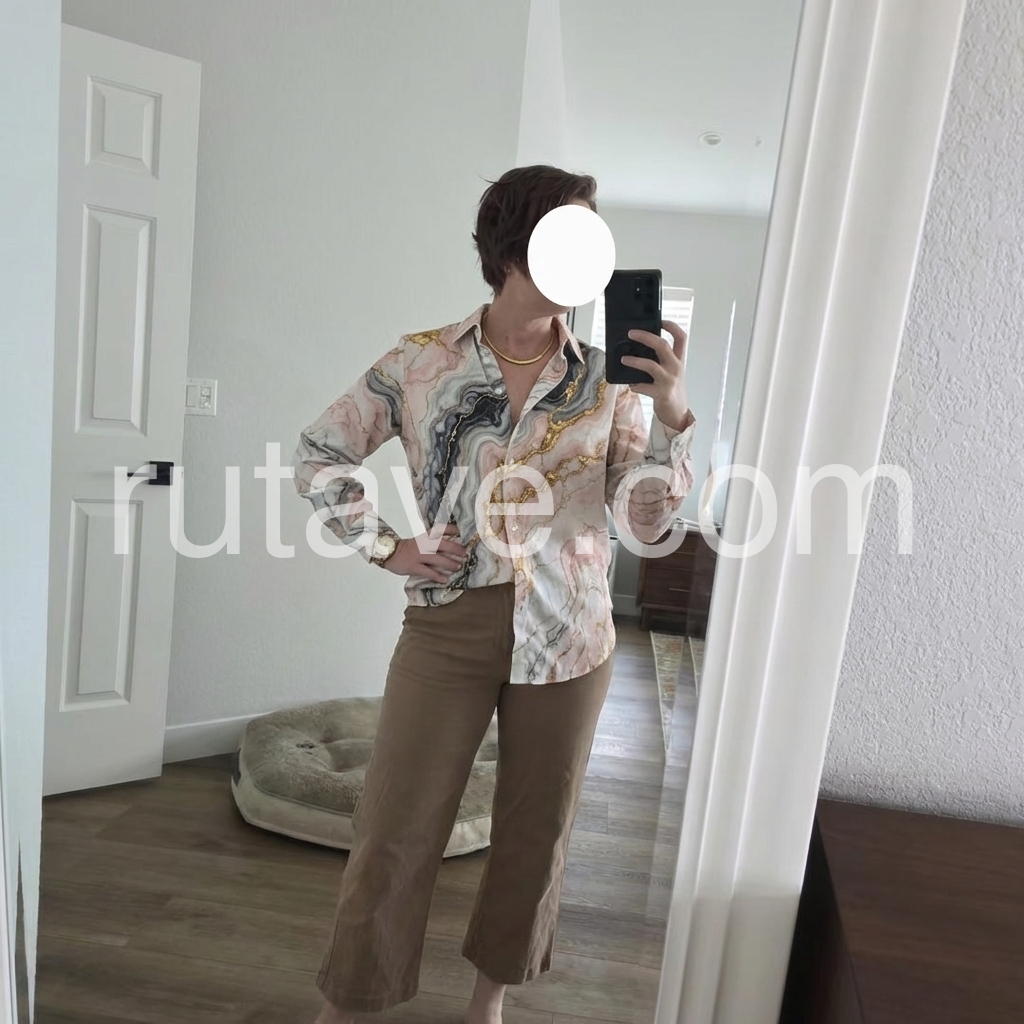 This shirt is a luxury statement piece with a marble and gold print.