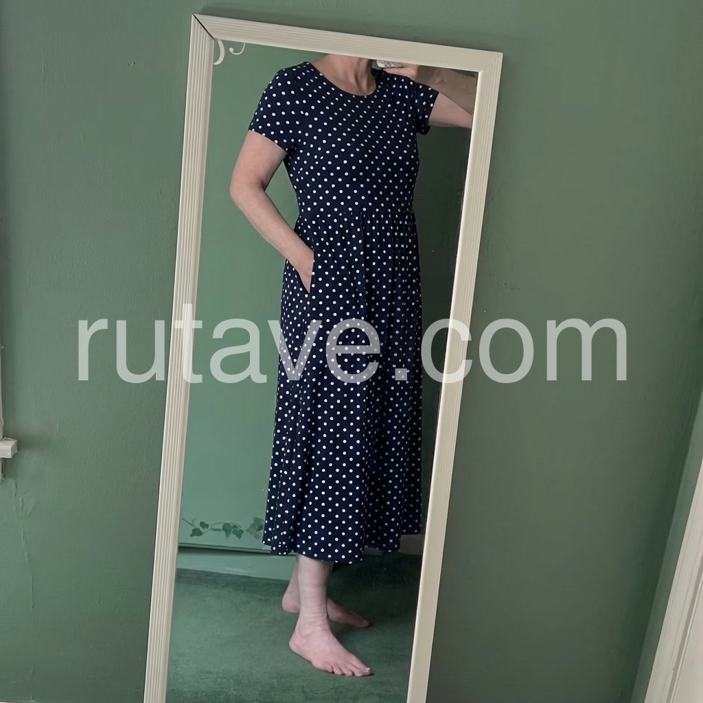 Navy Polka Dot Flowy Midi Dress with Pockets
