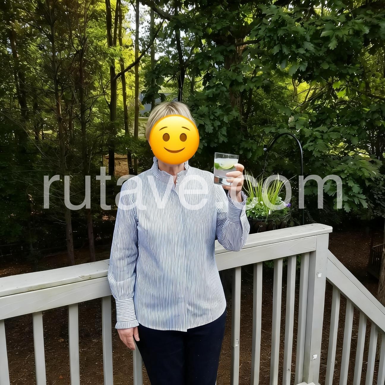 Women's Long-sleeved Ruffled Stand Collar Blue Stripes Shirt