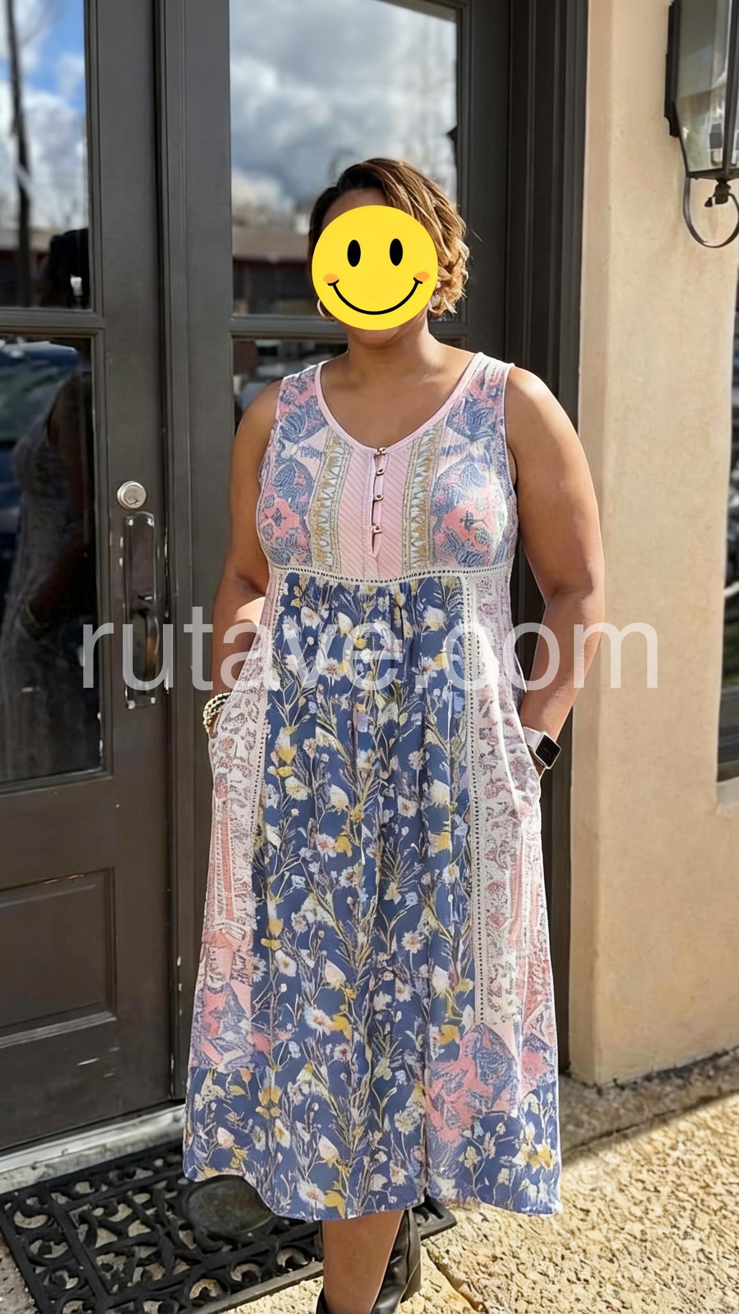 This sleeveless midi dress features a vibrant blue floral print with delicate embroidery details. The V-neck and button-down front add a touch of charm. Lightweight fabric perfect for summer days. Ideal for beach outings or casual events. Effortlessly stylish with a bohemian flair.