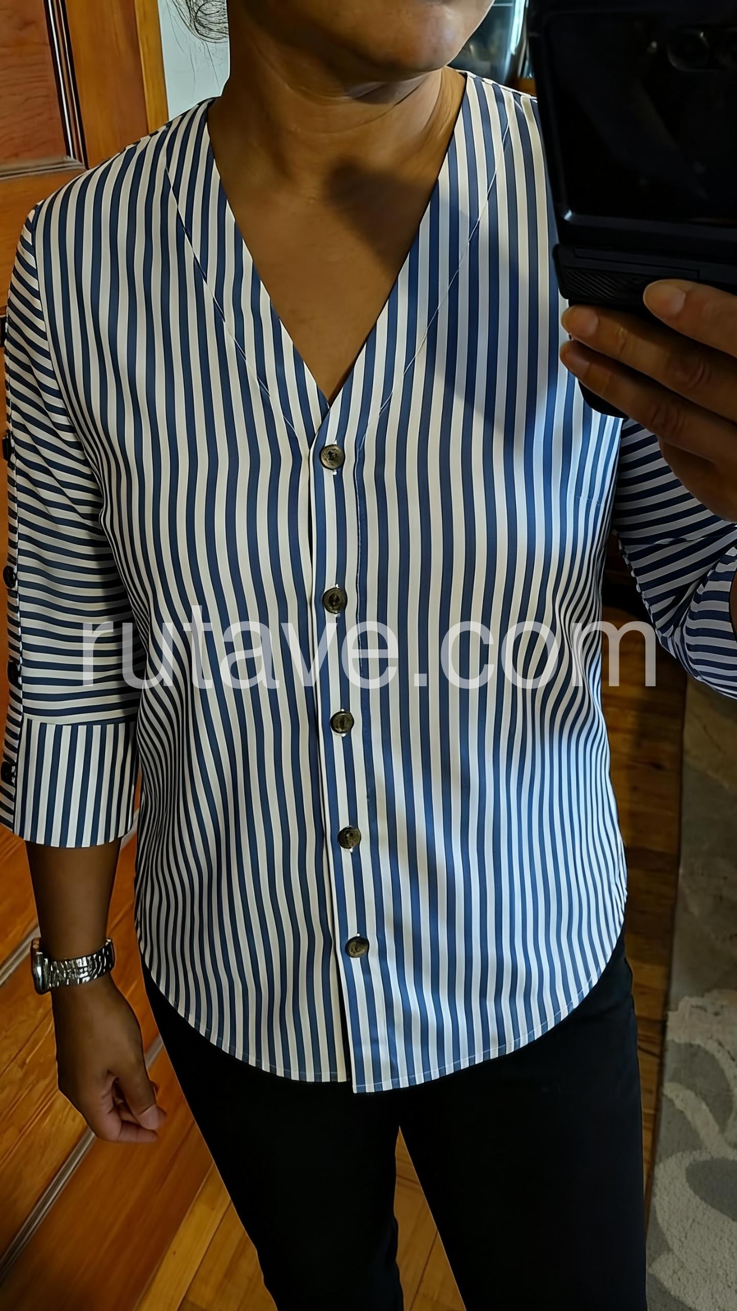 Blue Striped Button Down Blouse