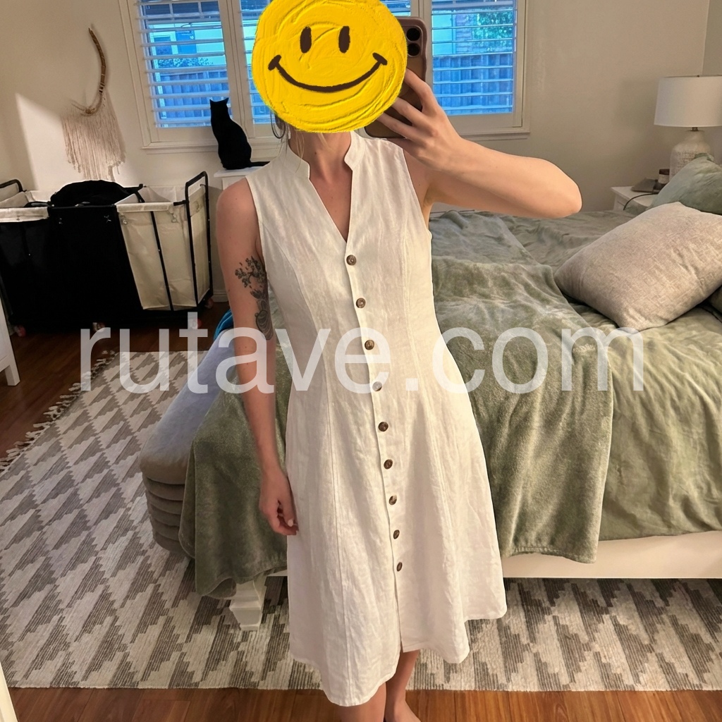The stand collar adds a polished touch, and the button-front design lets you adjust the fit for comfort. The lightweight linen fabric keeps you cool in summer heat, no more sticky, uncomfortable dresses! The flowy A-line skirt skims over thighs, and the sleeveless design shows off your arms beautifully.