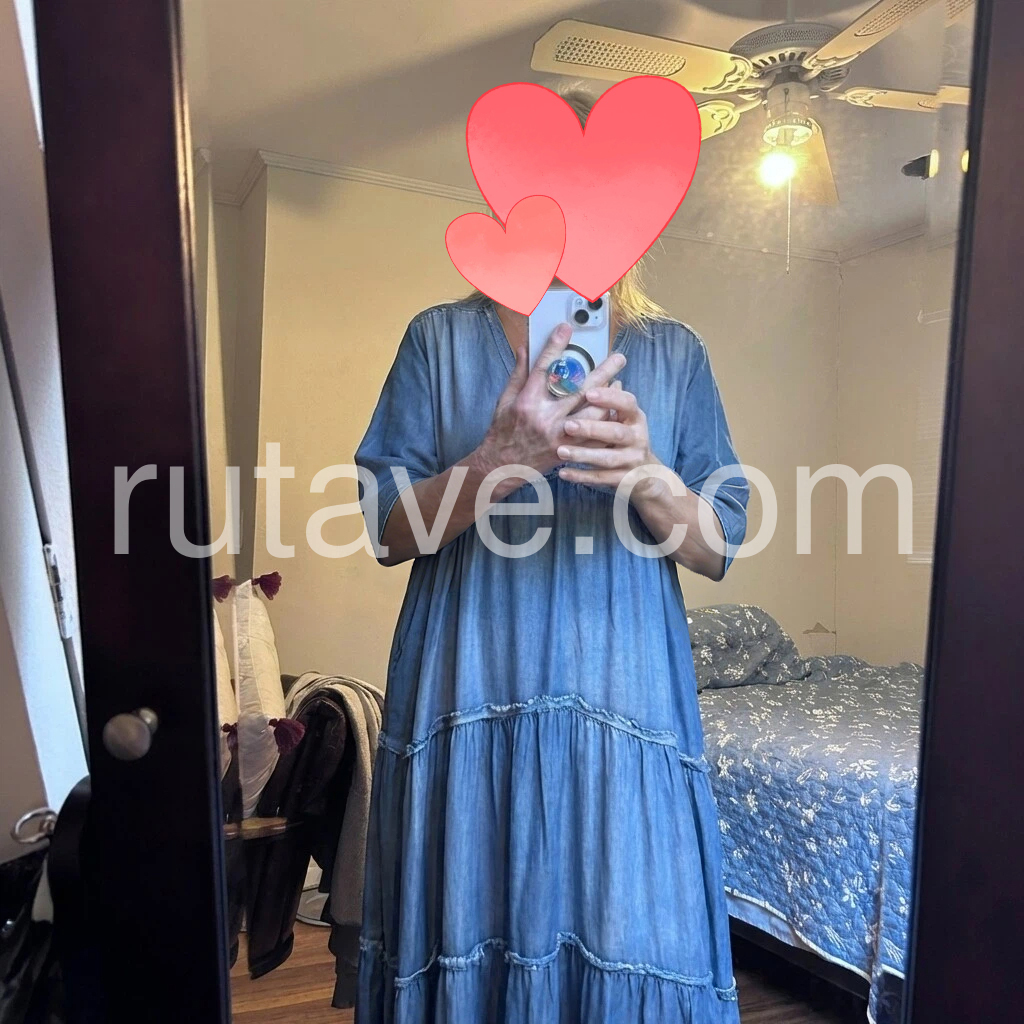 This Blue Denim Plain 3/4 Sleeve Maxi Dress is a must-have for any wardrobe. Its classic design and 3/4 sleeves make it versatile for any occasion. The high-quality denim material ensures durability and comfort, while the plain blue color adds a touch of sophistication. Elevate your style with this timeless piece.